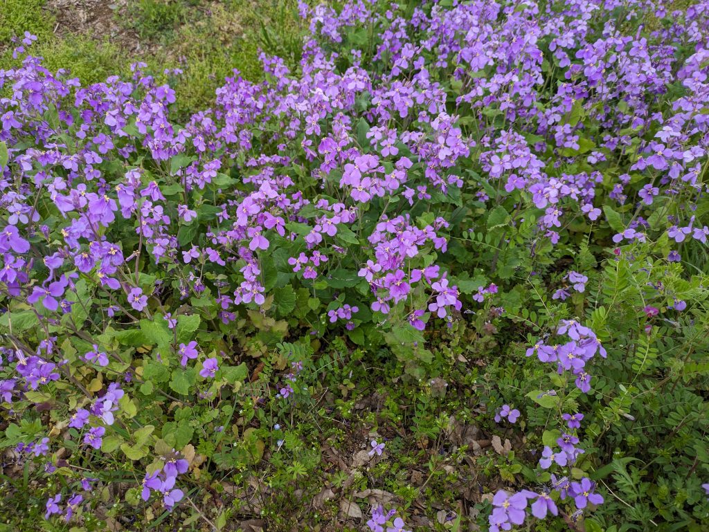 「おおあらせいとう」は、桜が咲く頃に、川の土手や道の脇などに群生し青紫に春を彩る花です。青紫に咲く花としてはラベンダーや藤が有名ですが、この花に強い香りはありません。形が菜の花に似ているので青く咲く菜の花だろうくらいに、ずっと思っていました。何という花なのだろうと思っても、花の名前を確認したことはありませんでした。