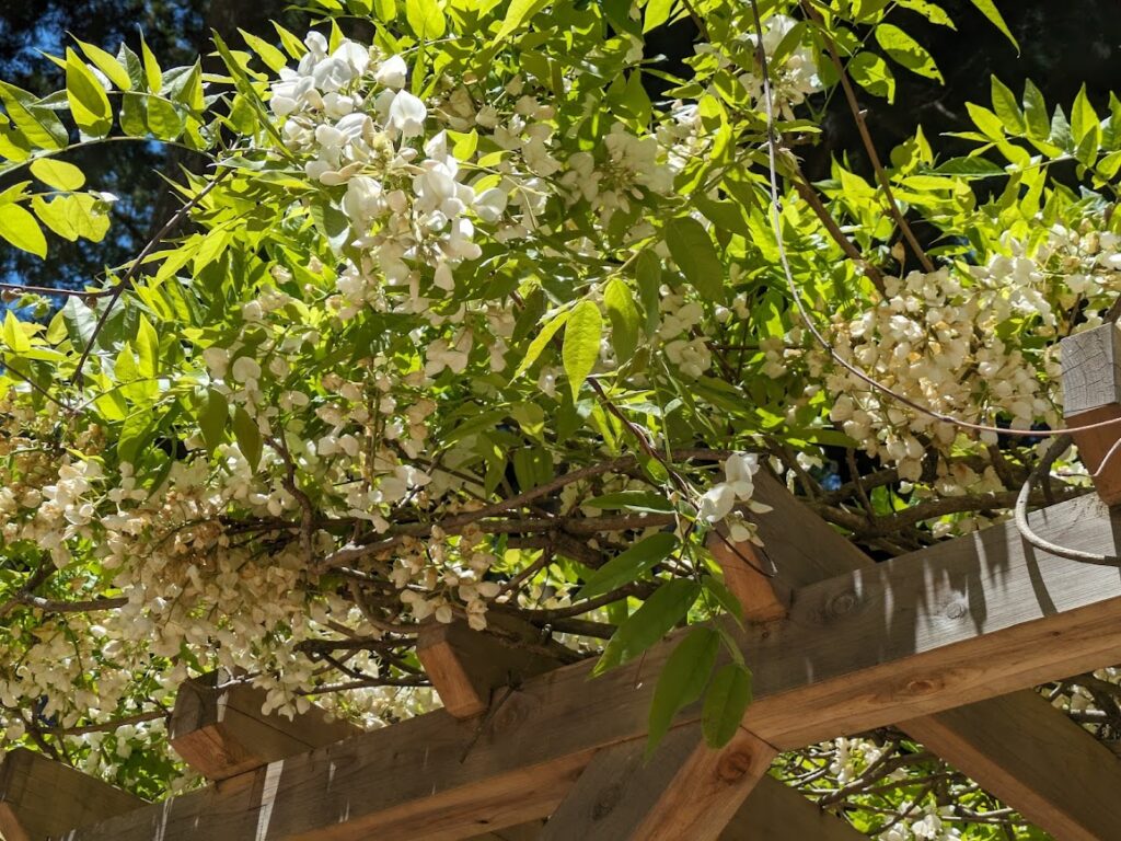 後半は、姉が早世した後の父と幸田さんの草木にまつわる記憶が書かれています。その中で藤の花が出てきます。父と並んで藤を見た幸田さんは「その美しさはない。沢山な虻が酔って夢中なように飛び交う。羽の音が高低なく一つになっていた。しばらく立っていると、花の匂いがむうっと流れてきた。…ぼんやりというか、うっとりというか、父と並んで無言で佇んでいた。飽和というのがあの状態のことか、と後に思った…」と表現しています。そしてこの状態について父は「ものを思うにもなく思わぬにもなき境」と過去に書いていたと続け、「思うたびに、あわい愁いがかかる」という一文で随筆を終えます。言われてみれば確かに、藤の花を見ているとうっとりとした感じが心に満ちて、思考が停止してしまったような状態になります。