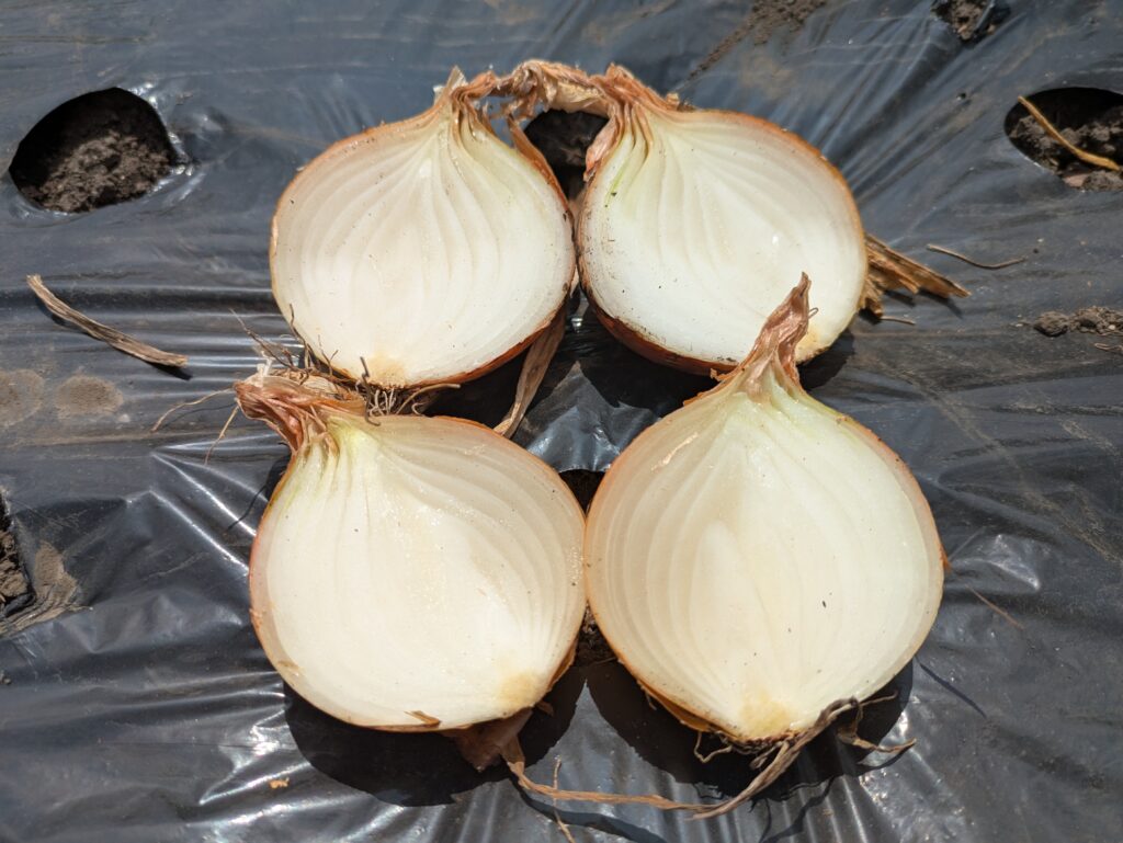 なんと、強い日差しでタマネギが煮えてしまったようです。